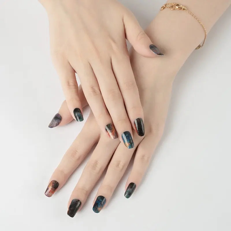 Holo glitter that catches every beam. Peel, press, and orbit—no UV required.